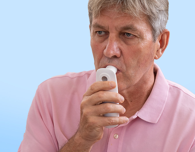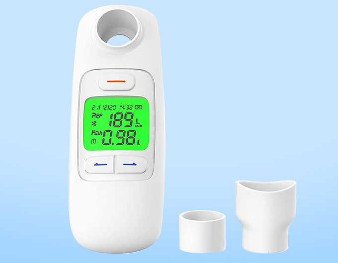 它具有 300 条记录的内存和两种可清洗的吹嘴,可确保舒适、卫生并准确跟踪您的肺功能。